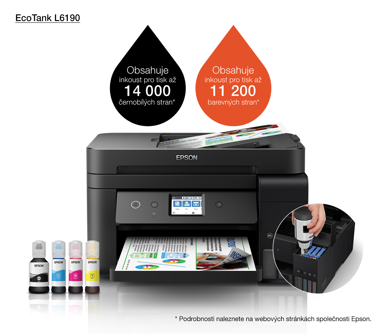 Drukarka EcoTank ITS może obniżyć koszty druku średnio aż o 90%1 dzięki swojej nowatorskiej konstrukcji. Wyposażona jest w pojemny system zasilania w atrament, dzięki czemu całkowicie eliminuje konieczność używania kartridży. Dodatkowo w zestawie znajduje się zapas atramentu nawet na trzy lata2. Ekonomiczne butelki z atramentem do uzupełniania można kupić osobno.