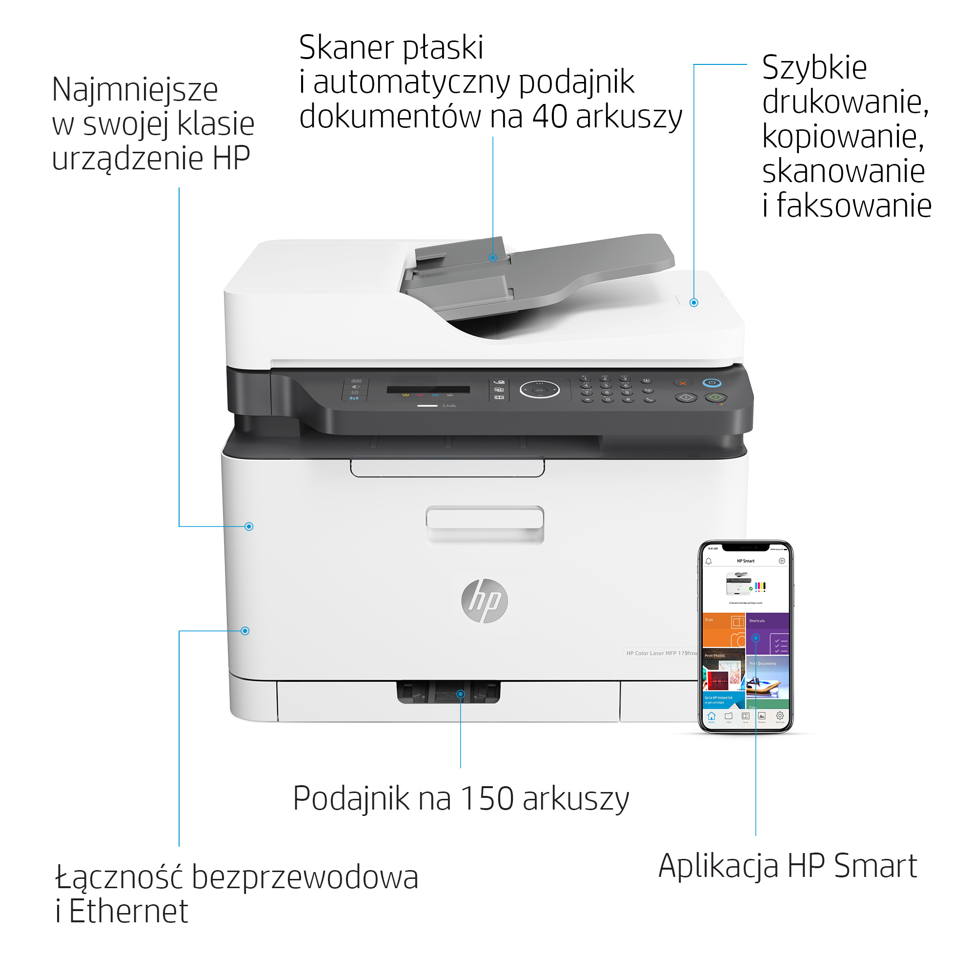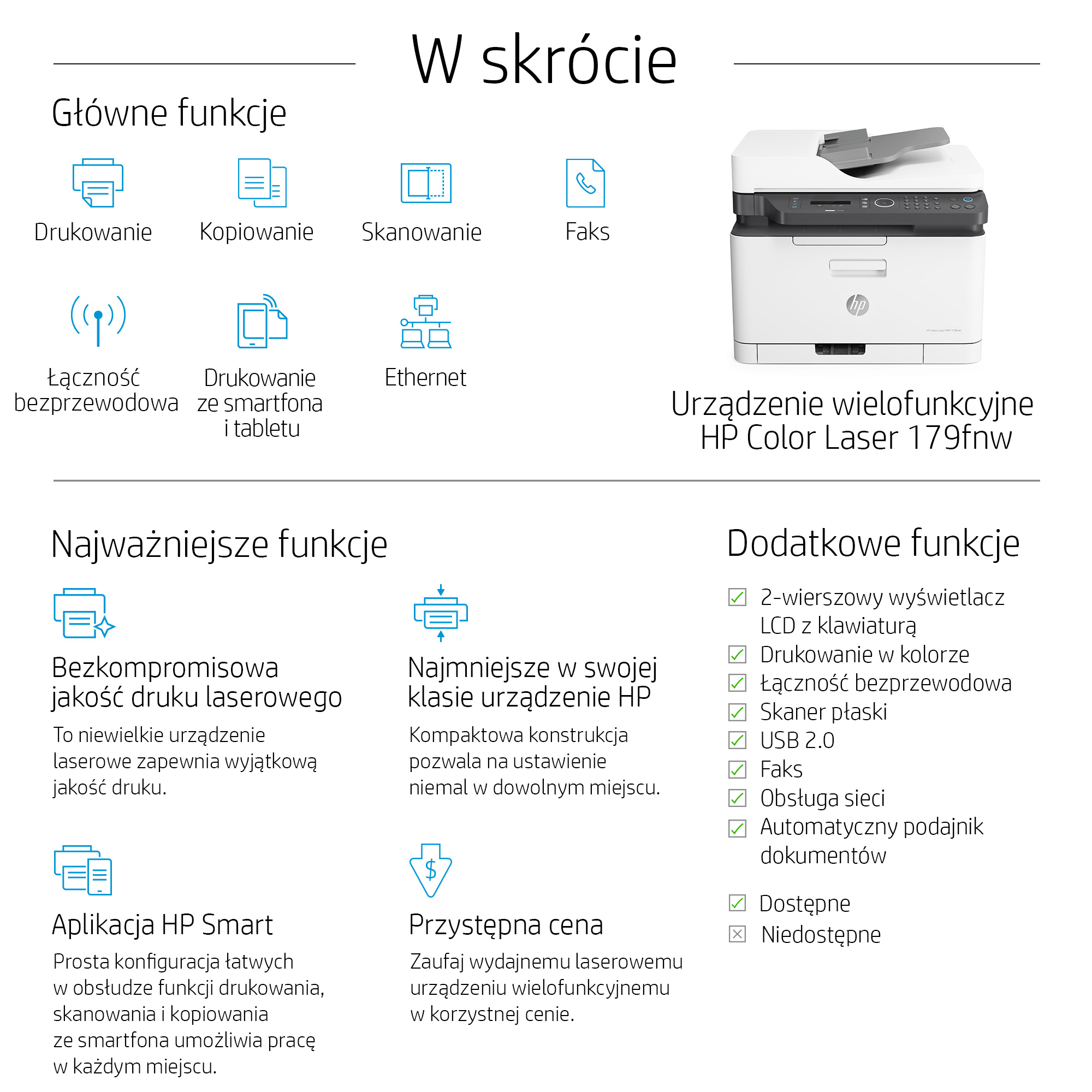 HP Laser 179fnw Bezprzewodowe Multifunction W kolorze Drukarka, Kopiarka, skaner; Druk dwustronny