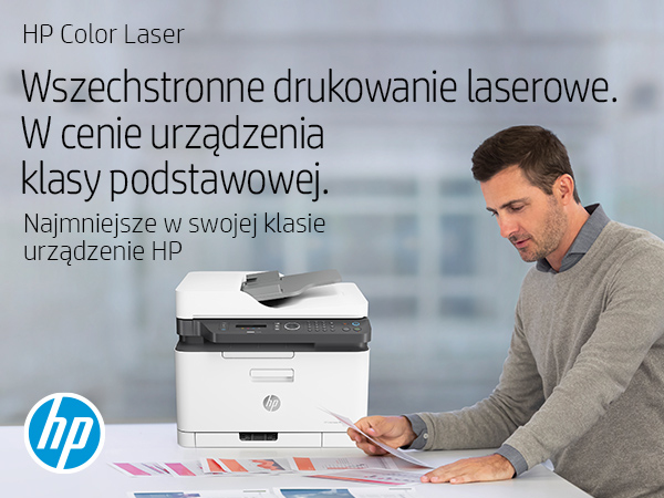 | Zawartość opakowania | Urządzenie wielofunkcyjne HP Color Laser 179fnw; Fabrycznie zainstalowany startowy czarny toner HP (700 stron); Wkład drukujący HP z błękitnym tonerem (500 stron); Wkład drukujący HP z żółtym tonerem (500 stron); Wkład drukujący HP z purpurowym tonerem (500 stron); Bęben obrazowy; Zestaw do zbierania tonera; Arkusz instalacyjny; Podręcznik użytkownika; Ulotka dot. pomocy technicznej; Karta gwarancyjna; Brak napędu CD-ROM; Przewód zasilający; Kabel USB; Kabel telefoniczny |