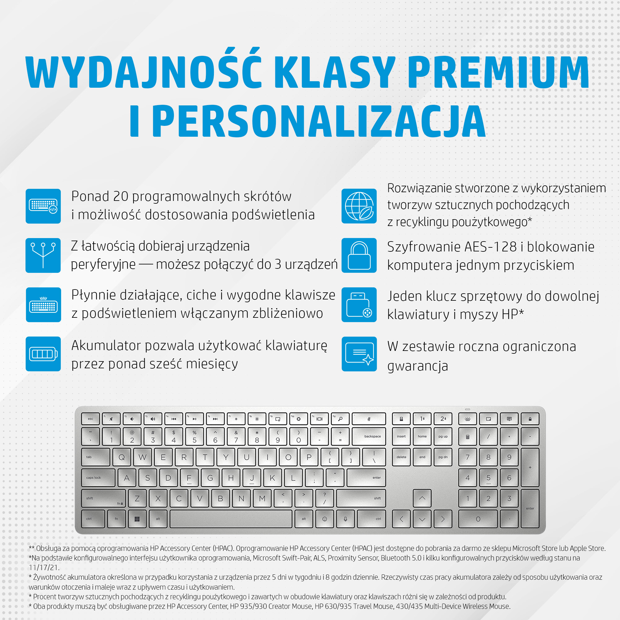 Klawiatura zapewnia możliwość cichego i komfortowego pisania dzięki położonym wyżej klawiszom z zagłębieniami, które są dopasowane do kształtu palców oraz technologii miękkiego powracania. Dodatkowo konfigurowalne, inteligentne czujniki pomagają dostosować podświetlenie klawiszy na podstawie warunków oświetlenia pokoju. Gdy podchodzi do nich użytkownik,włączają podświetlenie, a wyłączają je, kiedy nie są używane, co pozwala oszczędzać energię.