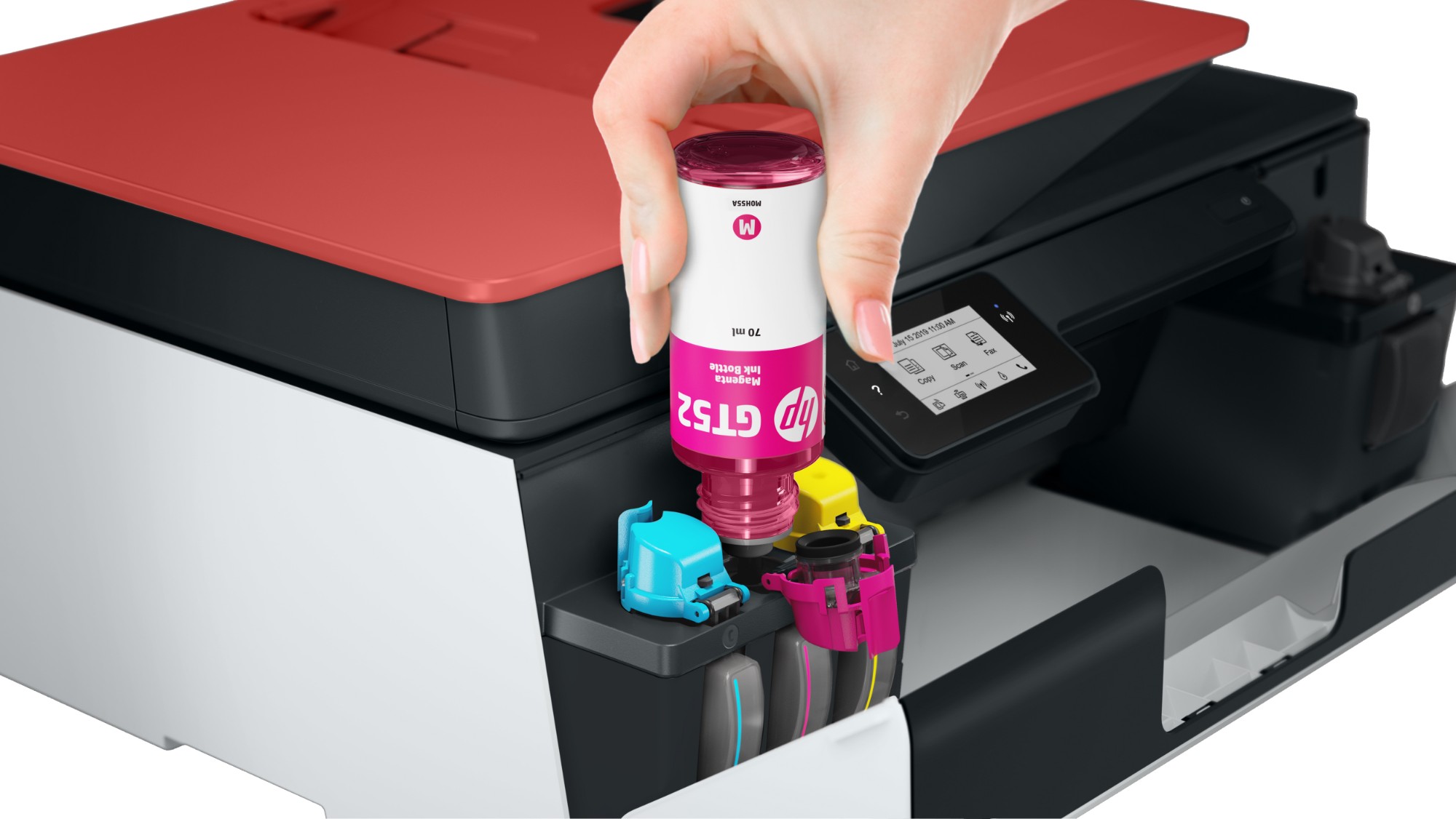 Łatwe samodzielne uzupełnianie atramentu, dzięki butelkom o dużej pojemności, zabezpieczonym przed rozlaniem.[7]