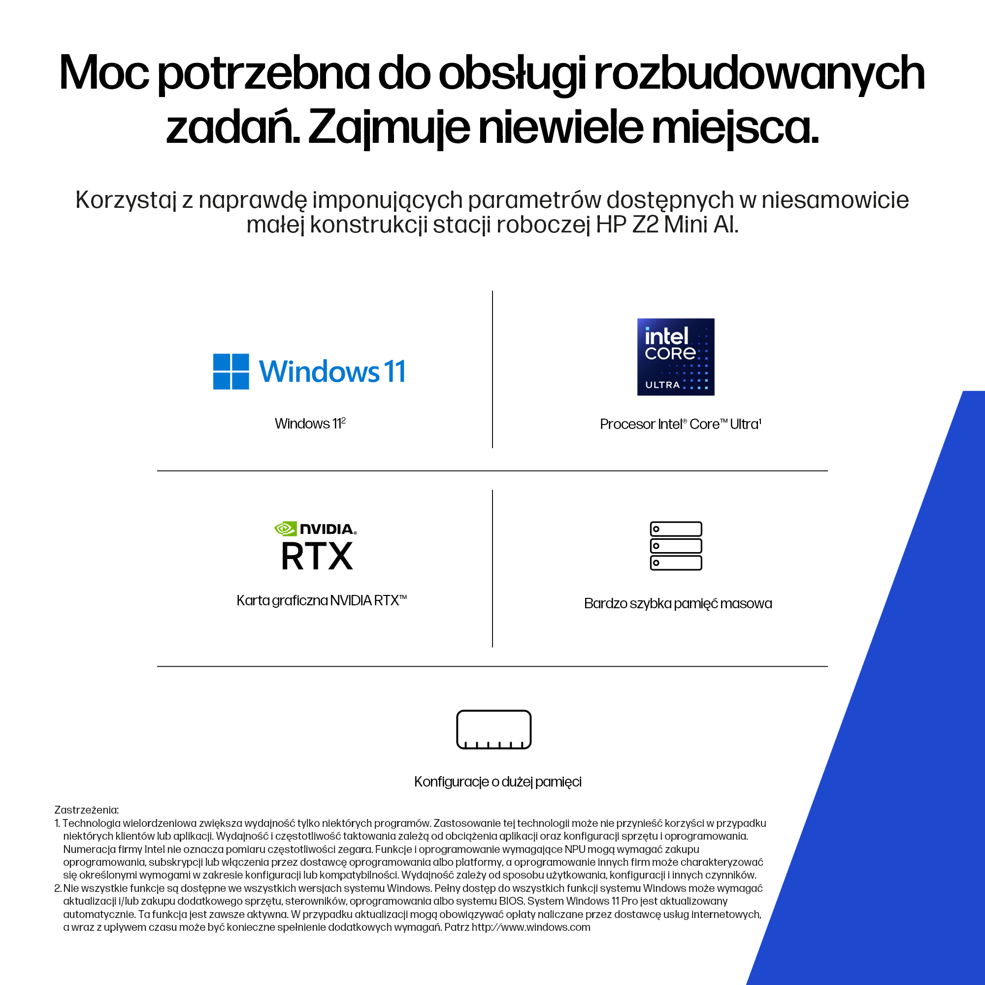 HP Z2 G1i Intel Core Ultra 7 265 32 GB DDR5-SDRAM 1 TB SSD NVIDIA RTX A1000 Windows 11 Pro Mini PC Stanowisko AI Workstation, AI PC Czarny