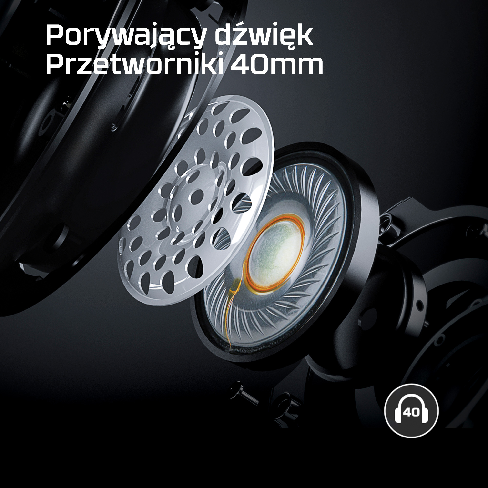 | Zawartość opakowania | Zestaw słuchawkowy do gier, bezprzewodowy adapter USB, kabel USB do ładowania, instrukcja szybkiego uruchomienia |